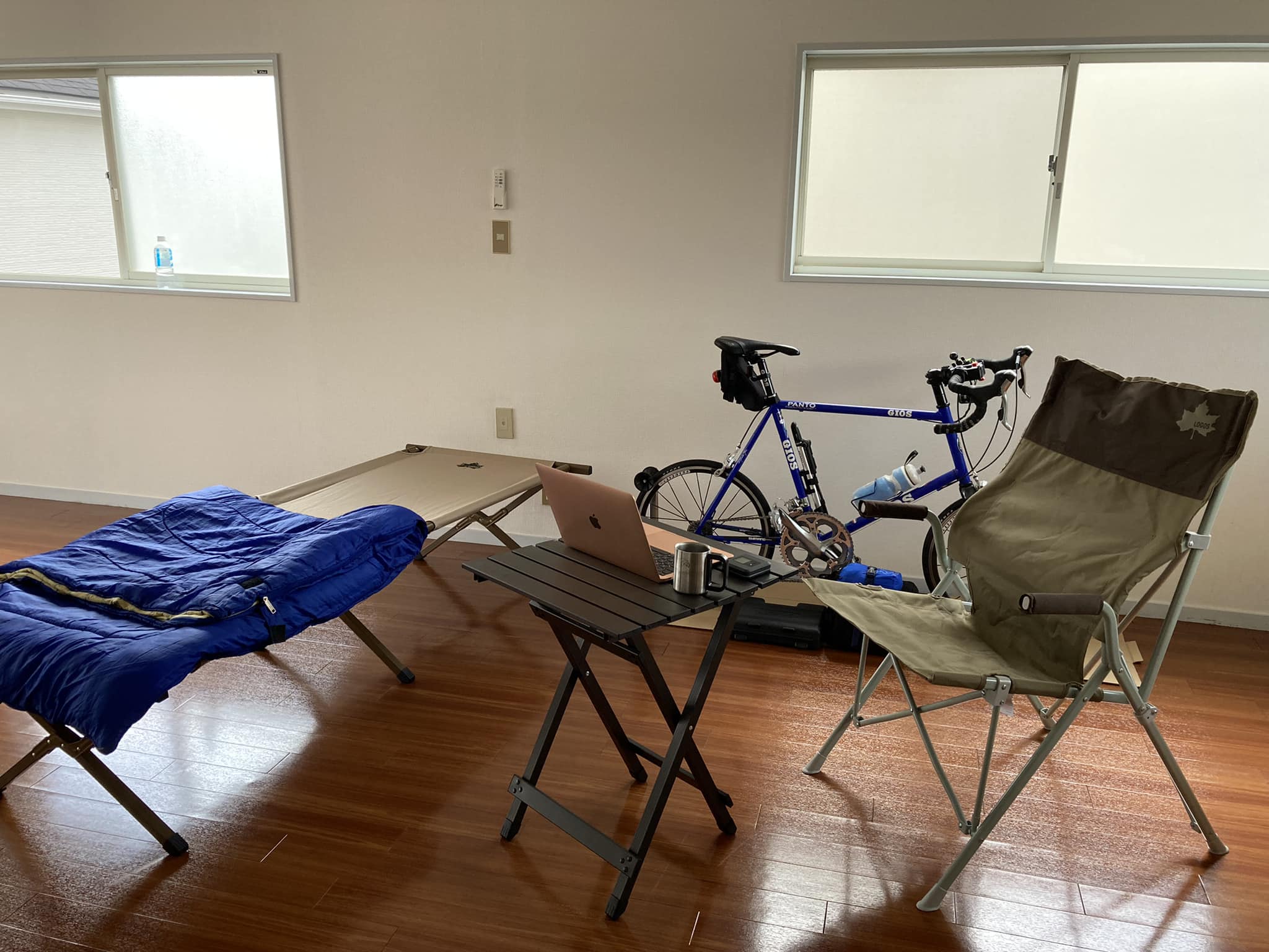 寝具周りはかなり苦労しました。コット → エアベッド → 結局おふとん という感じでやや敗北気味です。