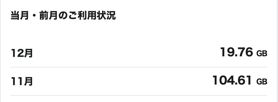 最後に 2022 年 11 月のパケット使用量と 2022 年 12 月 05 日までの 12 月のパケット使用量を以下に貼り付けておしまいにしたいと思います。